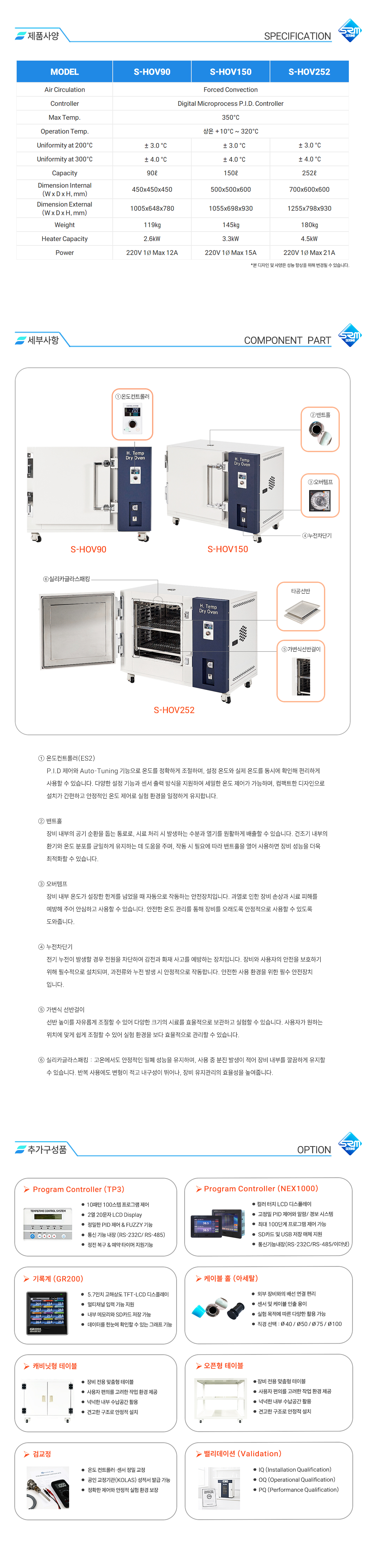 High Temp Dry Oven은 고온 열풍 순환 방식을 이용해 실험 시료의 건조, 수분 제거, 내열 테스트, 용매 증발, 경화 등 다양한 실험에 활용되는 기본 실험 장비입니다.