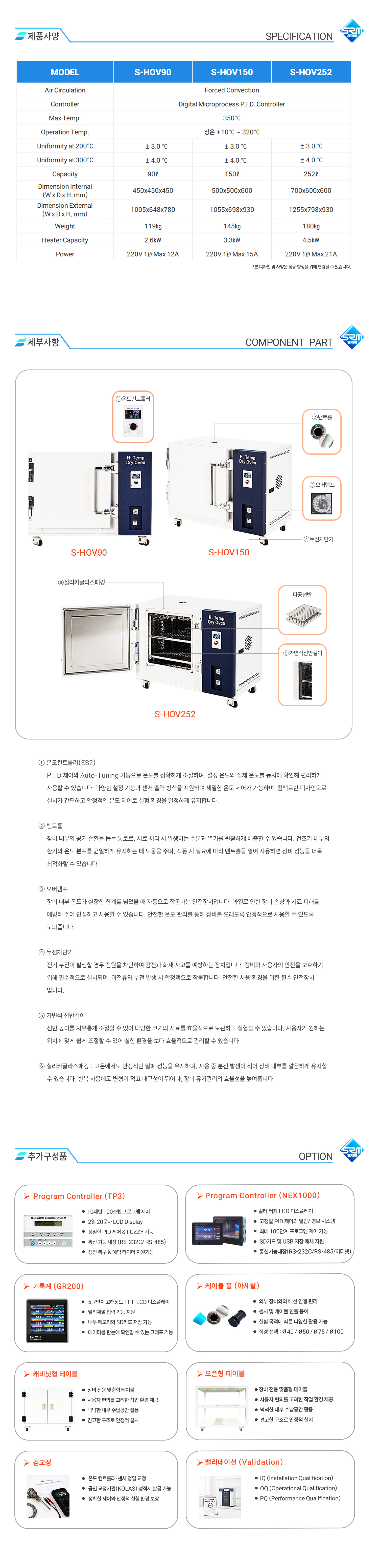 High Temp Dry Oven은 고온 열풍 순환 방식을 이용해 실험 시료의 건조, 수분 제거, 내열 테스트, 용매 증발, 경화 등 다양한 실험에 활용되는 기본 실험 장비입니다.